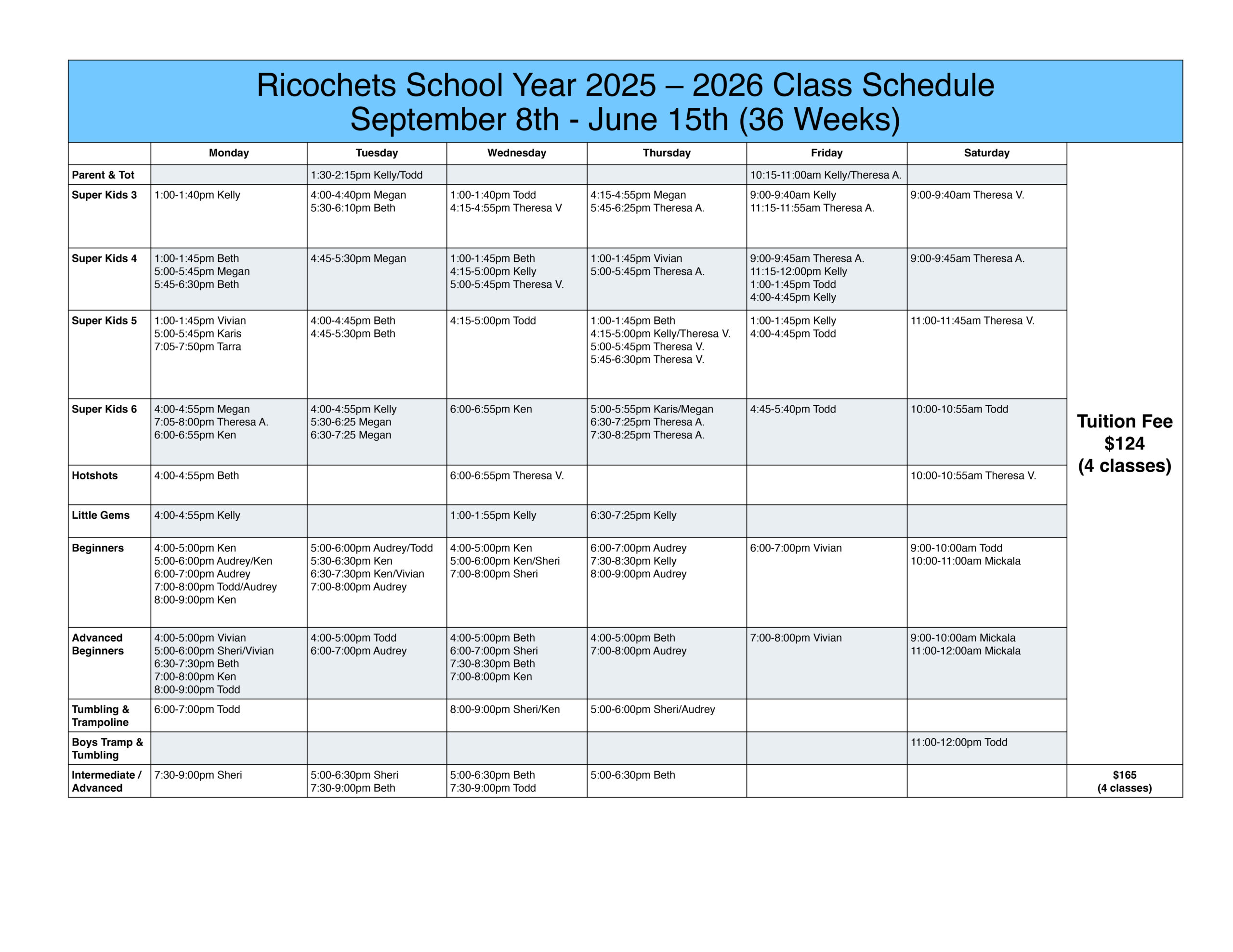 There will be no classes on the following holidays: